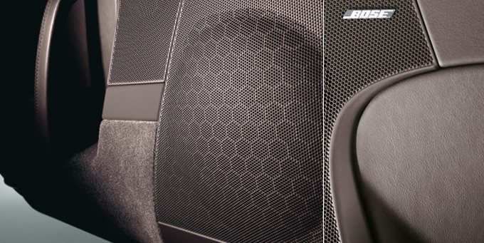 | BOSE® Surround Sound-System : 1160,12 € System numérique pour une restitution optimale du son avec 13 HP et un amplificateur numérique 7 canaux MOST® -Bus intégré. Traitement du signal par technologie Centerpoint™ pour assurer le Surround Sound et mesure du bruit par microphone intégré pour adapter et restituer automatiquement un son optimal (AudioPilot™). Puissance 325 Watts : 2 amplificateurs BOSE® TSM (= Two-State Modulation) de 100 Watts chacun, 5 sorties pré-ampli linéaires de 25 Watts chacune.13 haut-parleurs. Tableau de bord : 2 HP Néodyme de 2,5cm (calotte Soft-Dome) pour les fréquences aiguës, 1 enceinte Néodyme de 7cm pour les fréquences moyennes. Panneaux de porte : 2x8cm pour les fréquences moyennes, 2x 20 cm pour les graves. A l’arrière : 2×2,5 cm pour les fréquences aiguës (calotte Soft-Dome), 2x8cm pour les fréquences moyennes. Plage arrière : 1 subwoofer actif avec 2x13cm pour les graves (système bass-reflex). Nota : pas de montage possible à posteriori. |